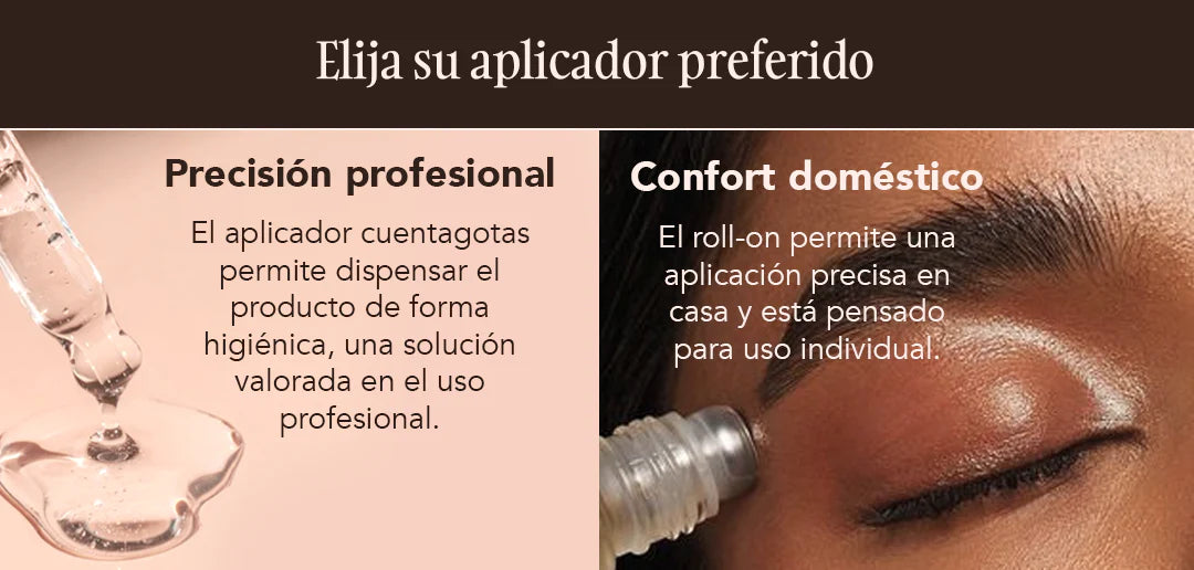 El aplicador roll-on es más práctico para quienes utilizan el producto a solas y no lo comparten con otras personas. Aplíquelo con un rodillo sobre las cejas limpias todas las noches antes de acostarse para que actúe.