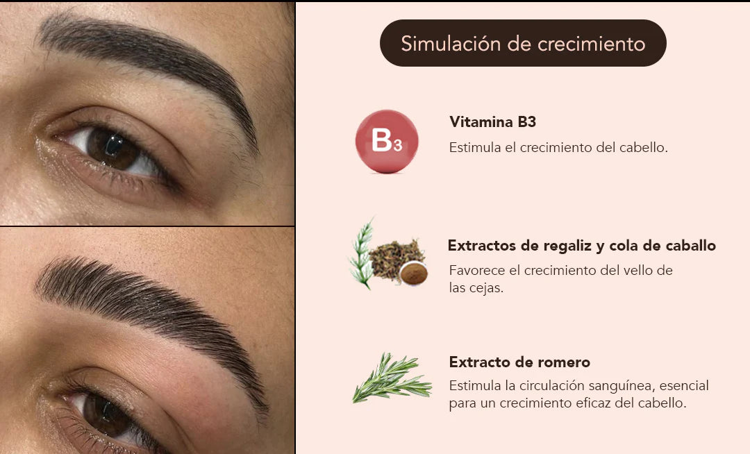 - Pantenol: Hidrata el vello de las cejas, reduciendo la sequedad y el encrespamiento, proporcionando un acabado pulido.