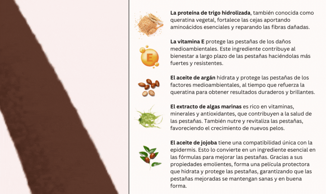 La fórmula Pro Nourish incluye ingredientes naturales excepcionales, como la queratina vegetal (derivada de proteínas de trigo hidrolizadas), que ayuda a hidratar profundamente las pestañas. Esta hidratación equilibrada se traduce en unas pestañas sedosas, brillantes y con una apariencia saludable.