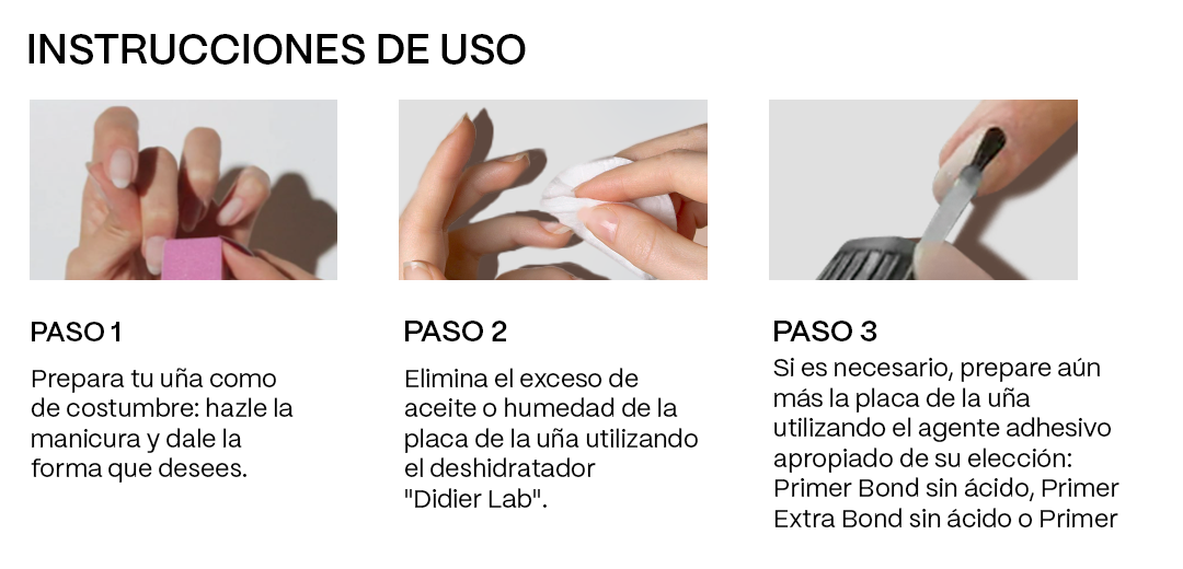 2. Elimine cualquier exceso de aceite o humedad de la placa de la uña utilizando Didier Lab Desiccant.