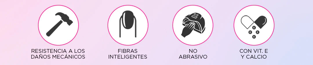 Fibras: el nylon forma una interconexión fuerte pero elástica. Estas partículas sintéticas son las que cumplen la función principal de fortalecer las uñas. La manicura durará más tiempo, ya que las partículas de fibra de vidrio combinadas durante el curado formarán una base de esmalte semipermanente extremadamente estable y fuerte.